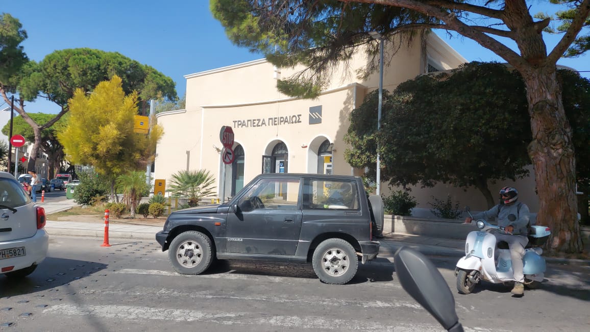 Ένα τζιπάκι, από χθες, βρίσκεται παρκαρισμένο πάνω στη διάβαση, έξω από την τράπεζα Πειραιώς, με αποτέλεσμα να δυσχεραίνει την διέλευση των μεγάλων οχημάτων που κινούνται στην περιοχή.