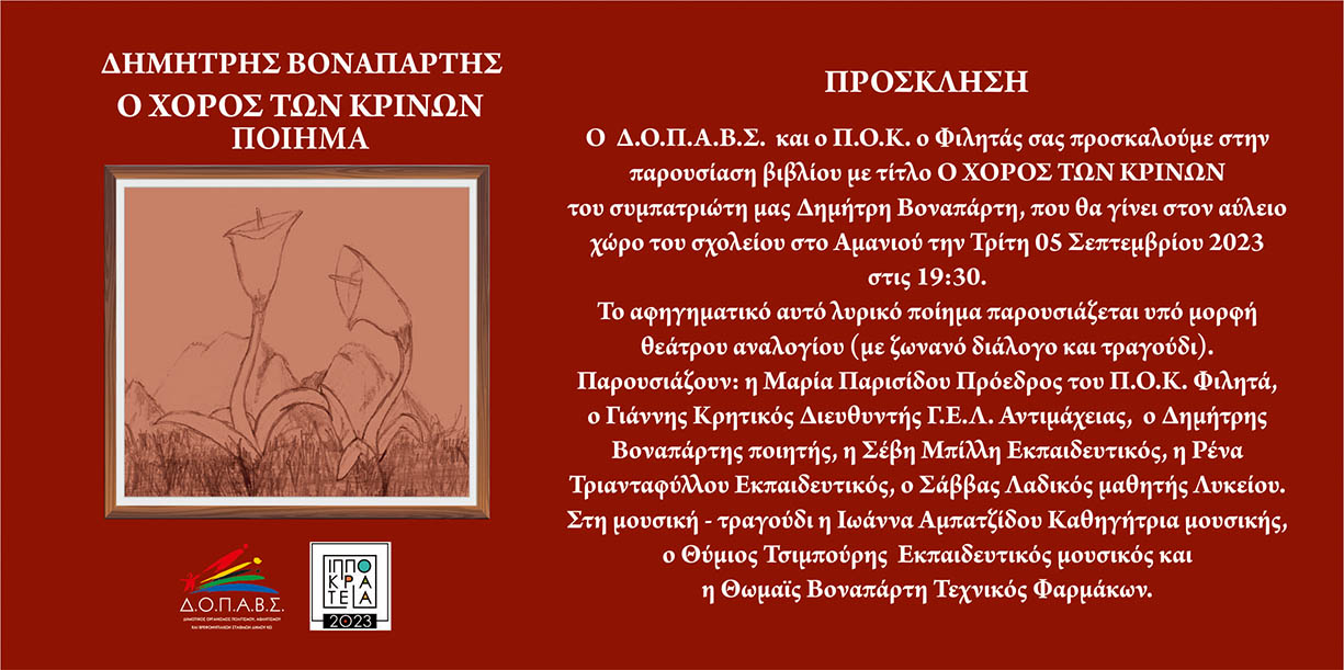 Παρουσίαση του βιβλίου του Δημήτρη Βοναπάρτη "Ο Χορός των κρίνων"