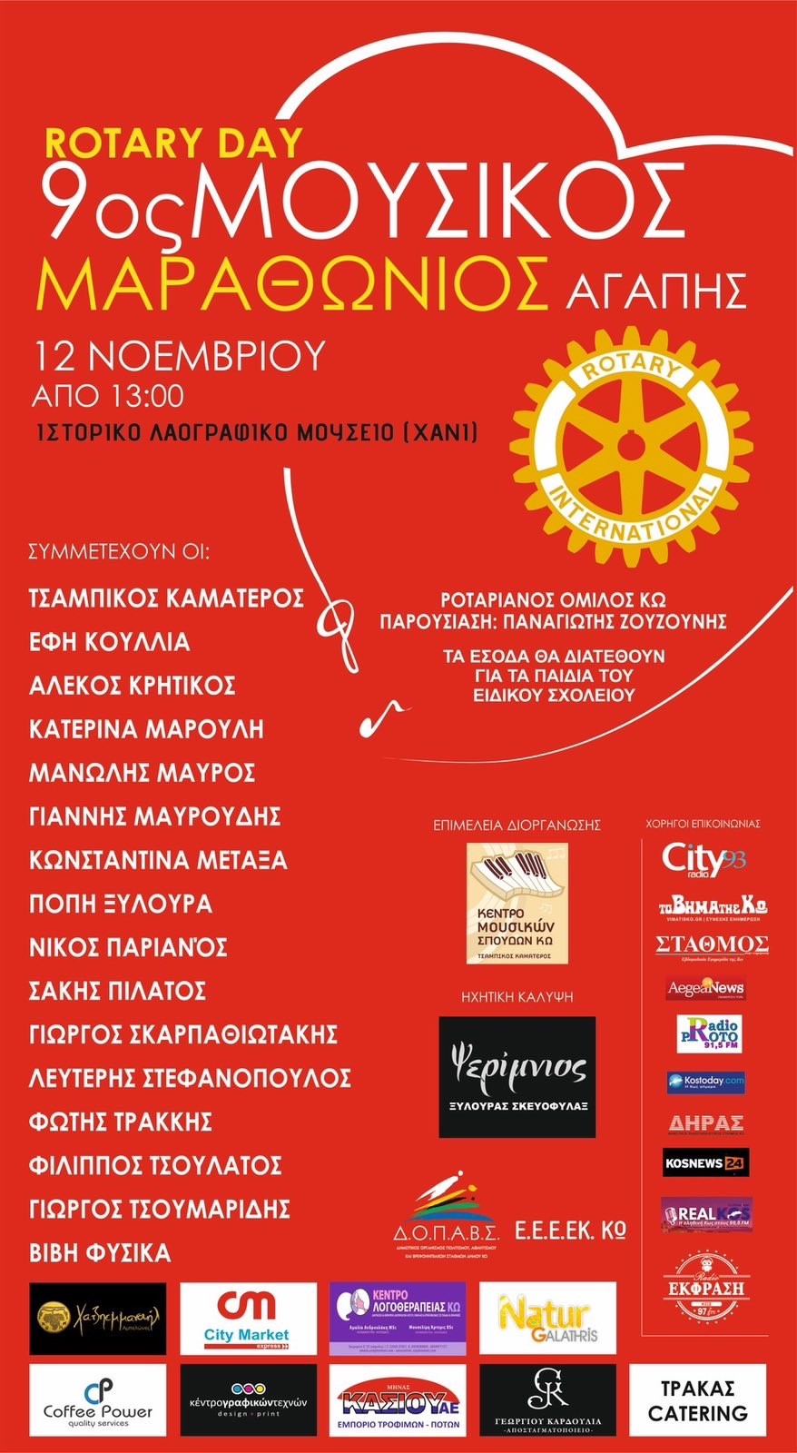 Rotary Κω: 12/11 ο 9ος Μουσικός Μαραθώνιος Αγάπης