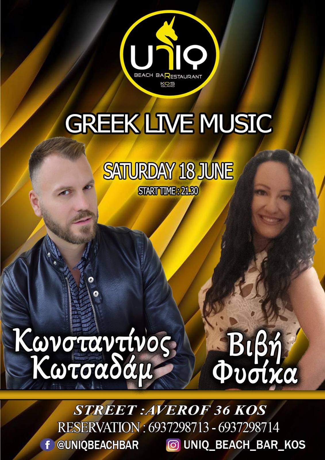 Σάββατο 18/6 Iive music στο "UNIQ" με τους Κων/νο Κοτσαδάμ και Βιβή Φυσίκα