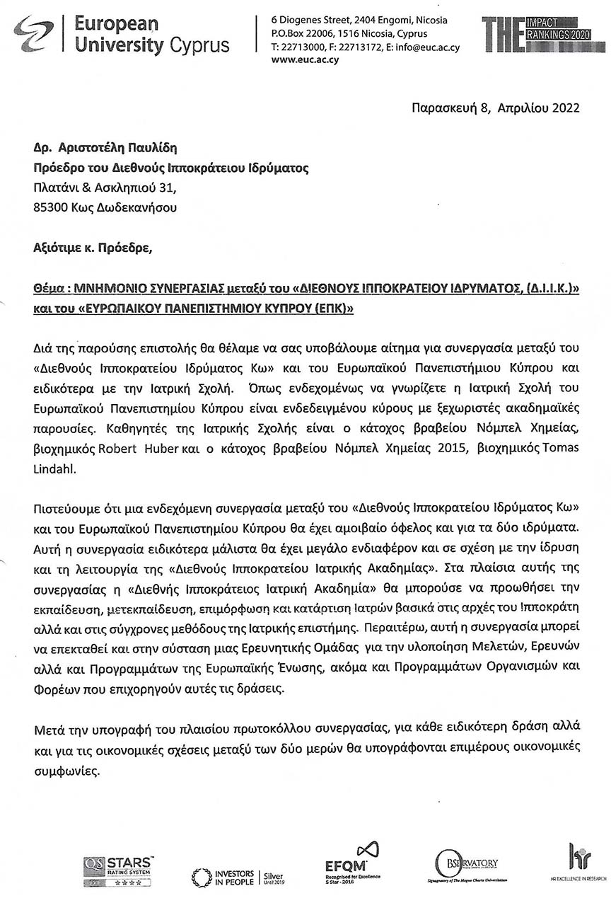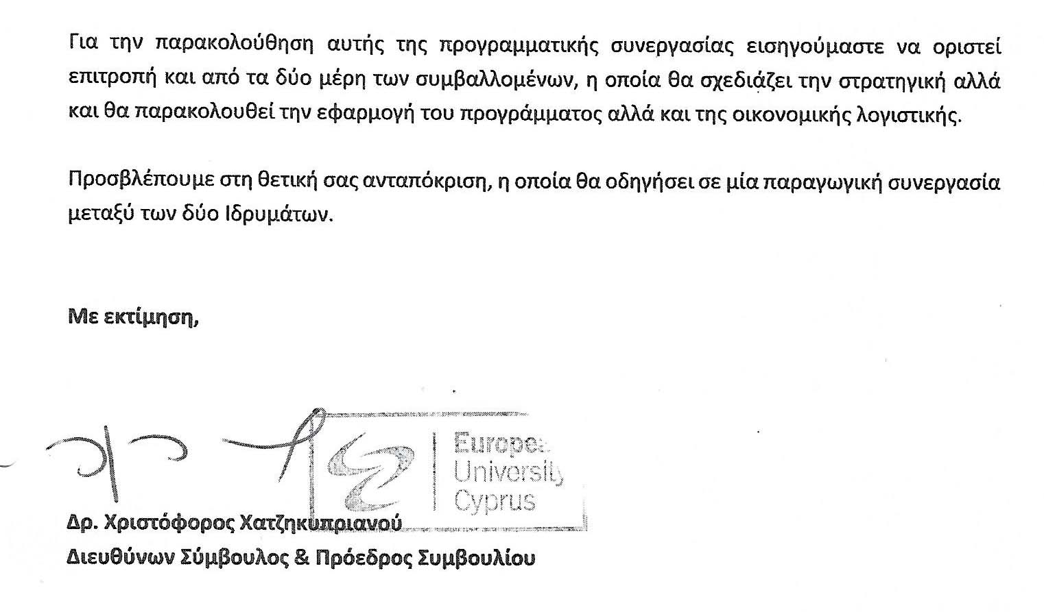 Ακολουθεί η  σχετική επιστολή του Ευρωπαίου Πανεπιστημίου Κύπρου.