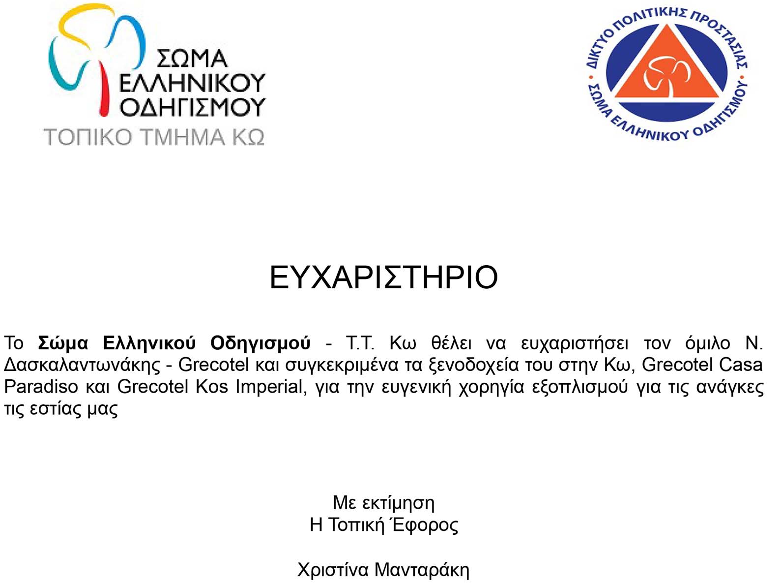 ΣΩΜΑ ΕΛΛΗΝΙΚΟΥ ΟΔΗΓΙΣΜΟΥ: ΕΥΧΑΡΙΣΤΗΡΙΟ ΣΤΟΝ ΟΜΙΛΟ ΔΑΣΚΑΛΑΝΤΩΝΑΚΗ (GRECOTEL)