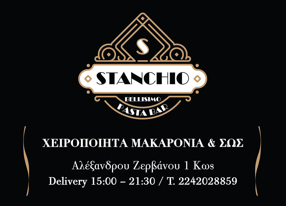 Το Pasta Bar "STANCHIO" στο κέντρο της Πόλης της Κω (οδός Ζερβάνου Αλεξανδρου 1) είναι ένα νέο εστιατόριο ζυμαρικών, με υπέροχες γεύσεις, γρήγορη εξυπηρέτηση και θα αποτελέσει τη νέα σας επιλογή για ένα νόστιμο και χορταστικό γεύμα.