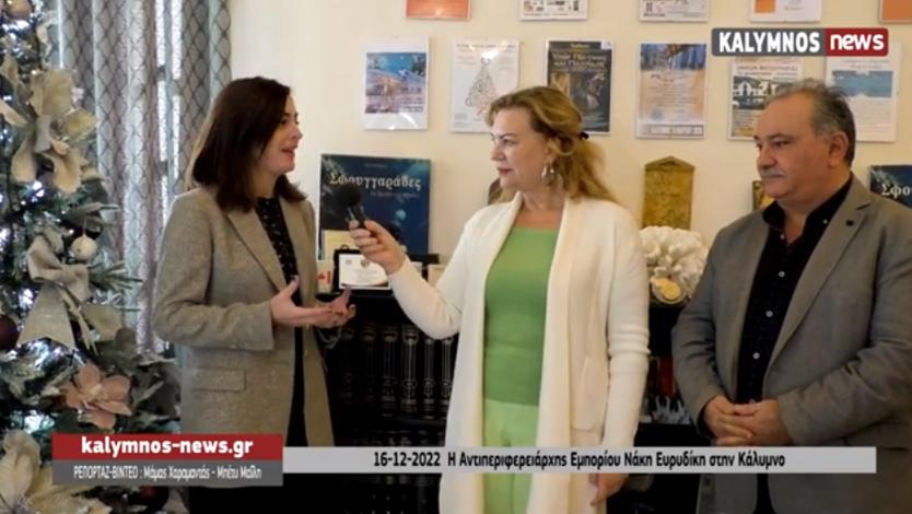 Την Κάλυμνο επισκέφτηκε σήμερα, Παρασκευή 16 Νοεμβρίου 2022, η Αντι περιφερειάρχης Εμπορίου Ευρυδίκη Νάκη.