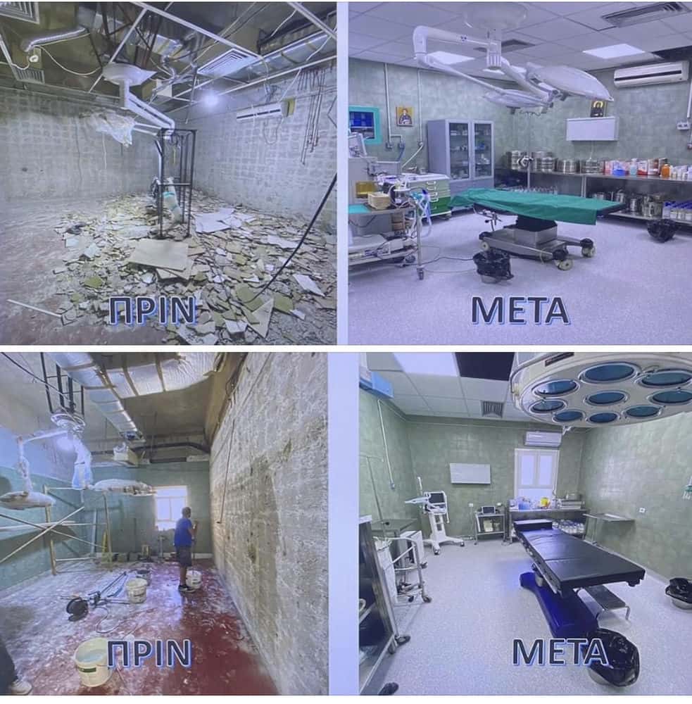 - Πλήρη ανακαίνιση της παλαιάς αίθουσας χειρουργείου με αντικατάσταση δαπέδου, αντικατάσταση των παλαιών πλακακίων και πλακιδίων στους τοίχους και τοποθέτηση νέων.
