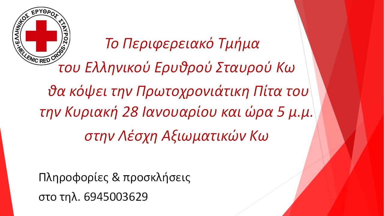 Στις 28/1 η πίτα του Ερυθρού Σταυρού Κω