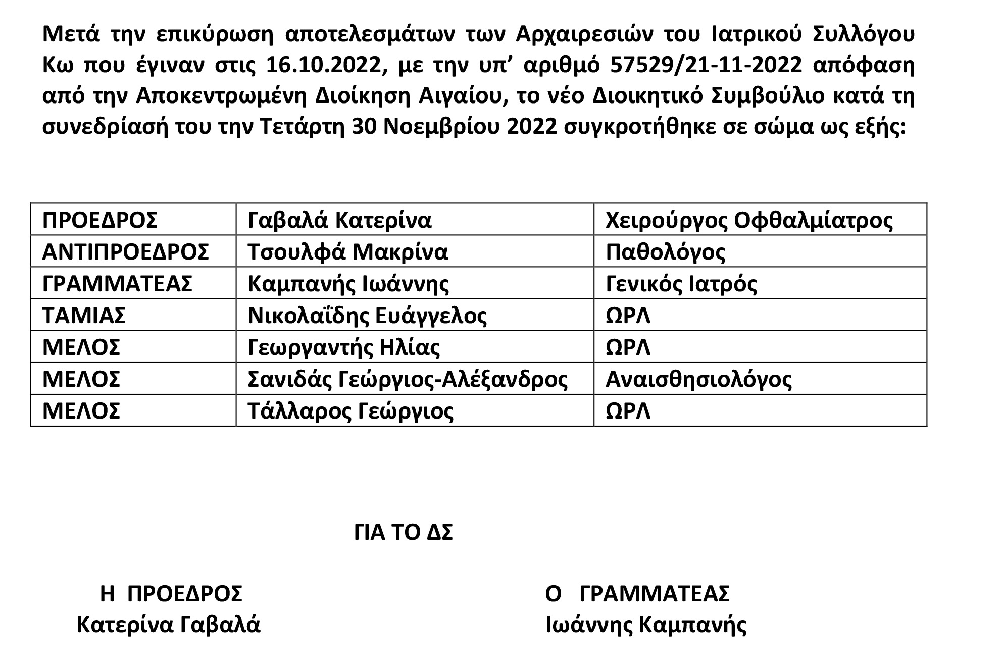 Συγκροτήθηκε σε σώμα το Δ.Σ. του Ιατρικού Συλλόγου Κω - Νέα Πρόεδρος η κ. Κατερίνα Γαβαλά