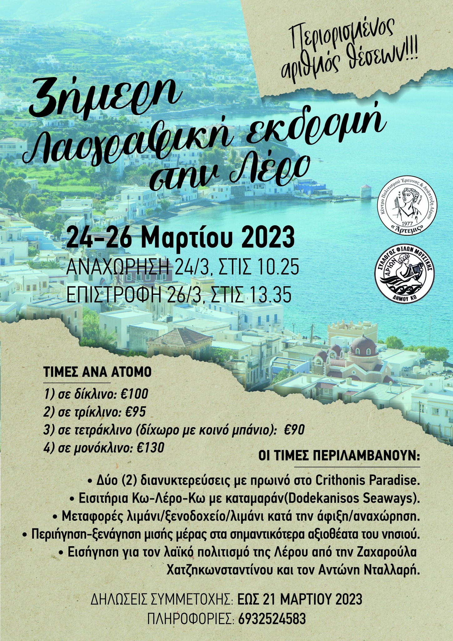 Σύλλογος Φίλων Μουσικής Κω "ΑΡΙΩΝ": 3ήμερη λαογραφική εκδρομή στη Λέρο
