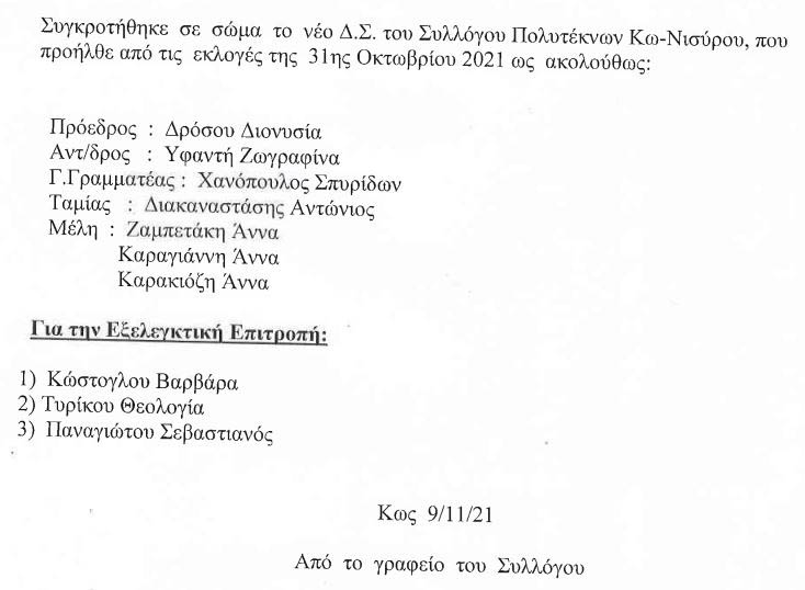 Tο νέο Δ.Σ. του Συλλόγου Πολυτέκνων Κω - Νισύρου
