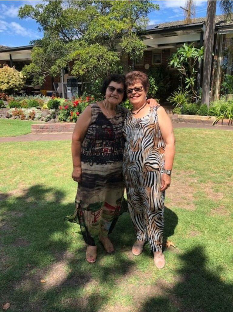 Dεξιά η Βίκη Καυκάκη με την αδελφή της Ελευθερία Κυριαζή. Φώτο:Supplied