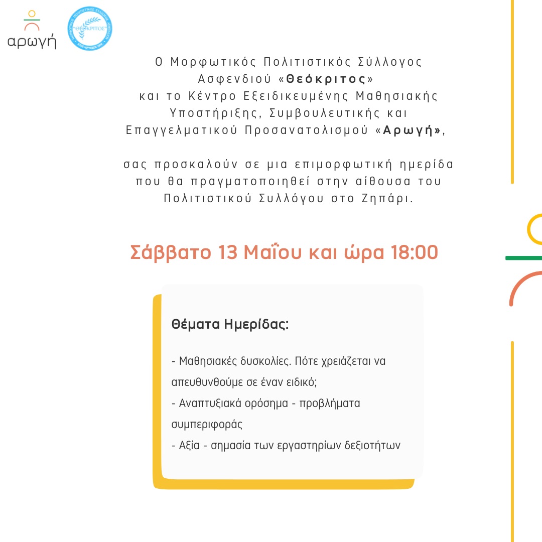 Θεόκριτος: Επιμορφωτική ημερίδα σε συνεργασία με το Κέντρο "Αρωγή"