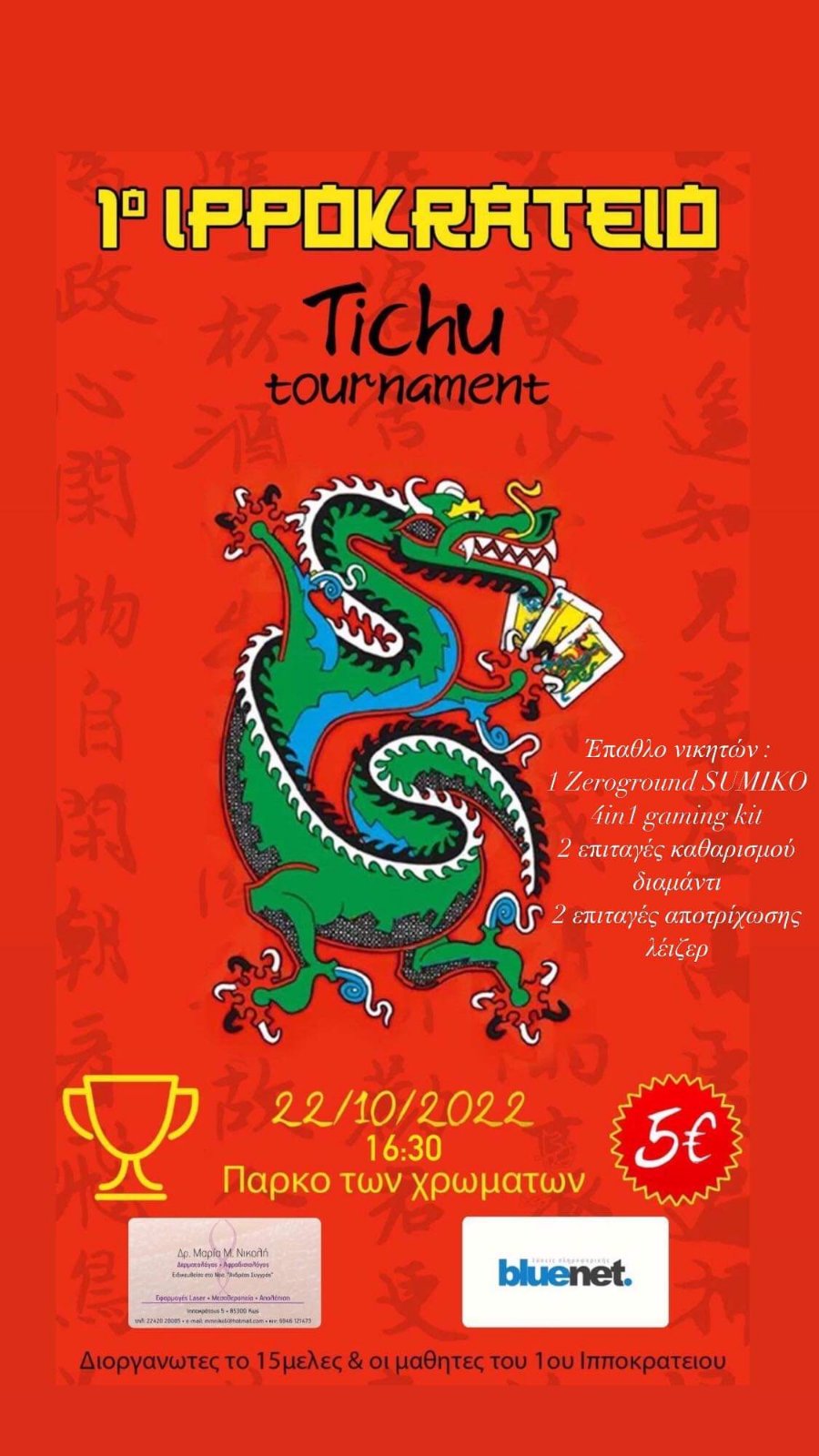 Τίτσου (Tichu) tournament, ένα από τα πιο δημoφιλή παιχνίδια με τράπουλα, που αγαπούν μικροί μεγάλοι, διοργανώνουν το 15μελές και οι μαθητές του 1ου ΓΕΛ Κω ''Ιπποκράτειο'' το Σάββατο 22 Οκτωβρίου στο καφέ Esguina πρώην ''Πάρκο των χρωμάτων'' στις 16:30 με μεγάλα δώρα και τιμή πρόσκλησης 5 ευρώ