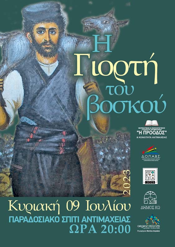 Η καθιερωμένη Γιορτή Βοσκού πραγματοποιείται και φέτος από τον Μορφωτικό και Εκπολιτιστικό Σύλλογο Αντιμάχειας ΄΄Η Πρόοδος΄΄ σε συνεργασία με την Περιφέρεια Νοτίου Αιγαίου, την Κοινότητα Αντιμάχειας και τον ΔΟΠΑΒΣ στα Θερινά Ιπποκράτεια 2023 την Κυριακή 9 Ιουλίου στις 8 το βράδυ στο Παραδοσιακό σπίτι στην Αντιμάχεια.