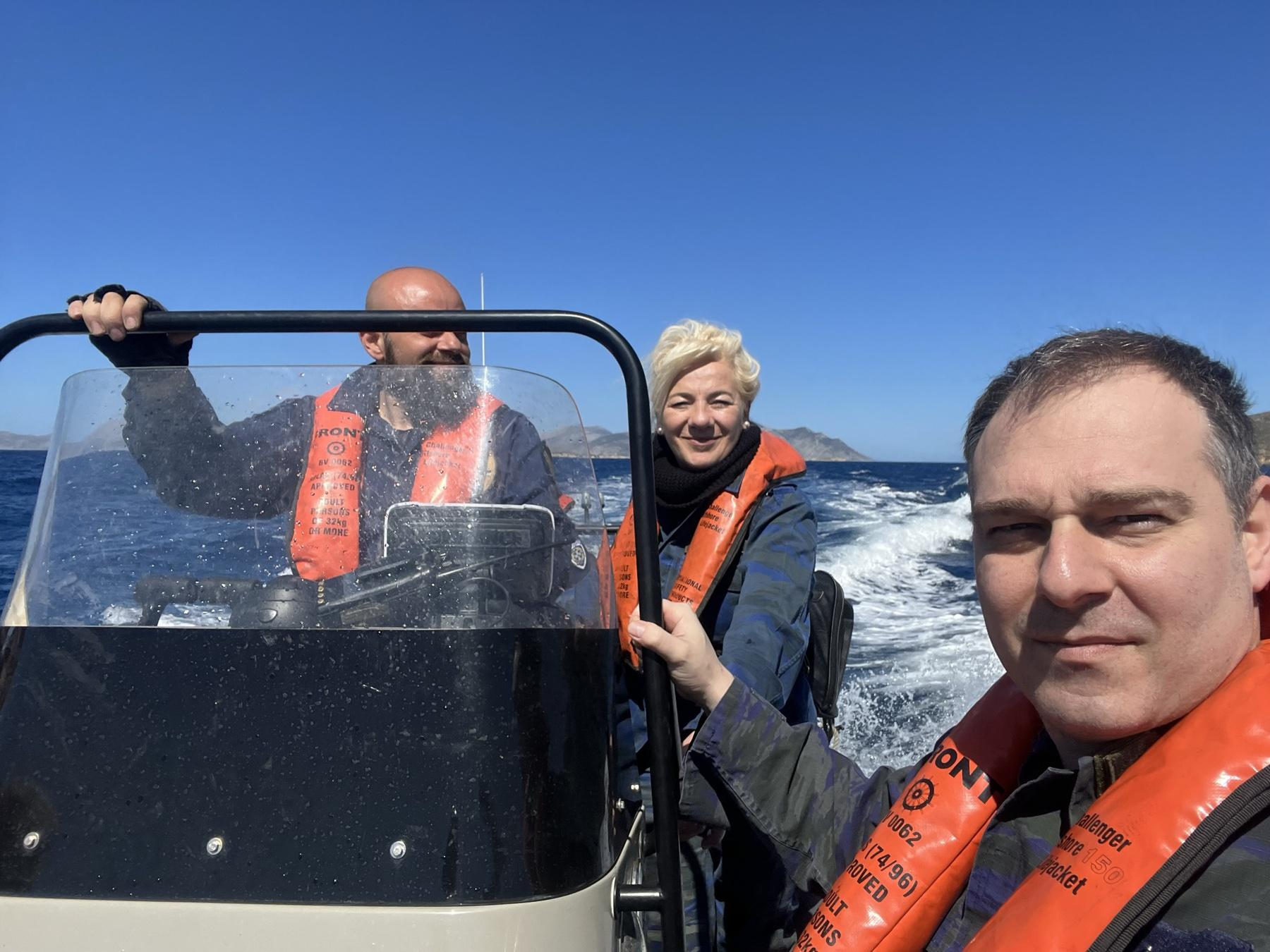 Το Κλιμάκιο υποδέχθηκε στην Ψέριμο, ο οπλίτης Ιατρός Παναγιώτης Θεοφίλης που στελεχώνει το ΠΙ Ψερίμου και οι λιγοστοί κάτοικοι του νησιού.