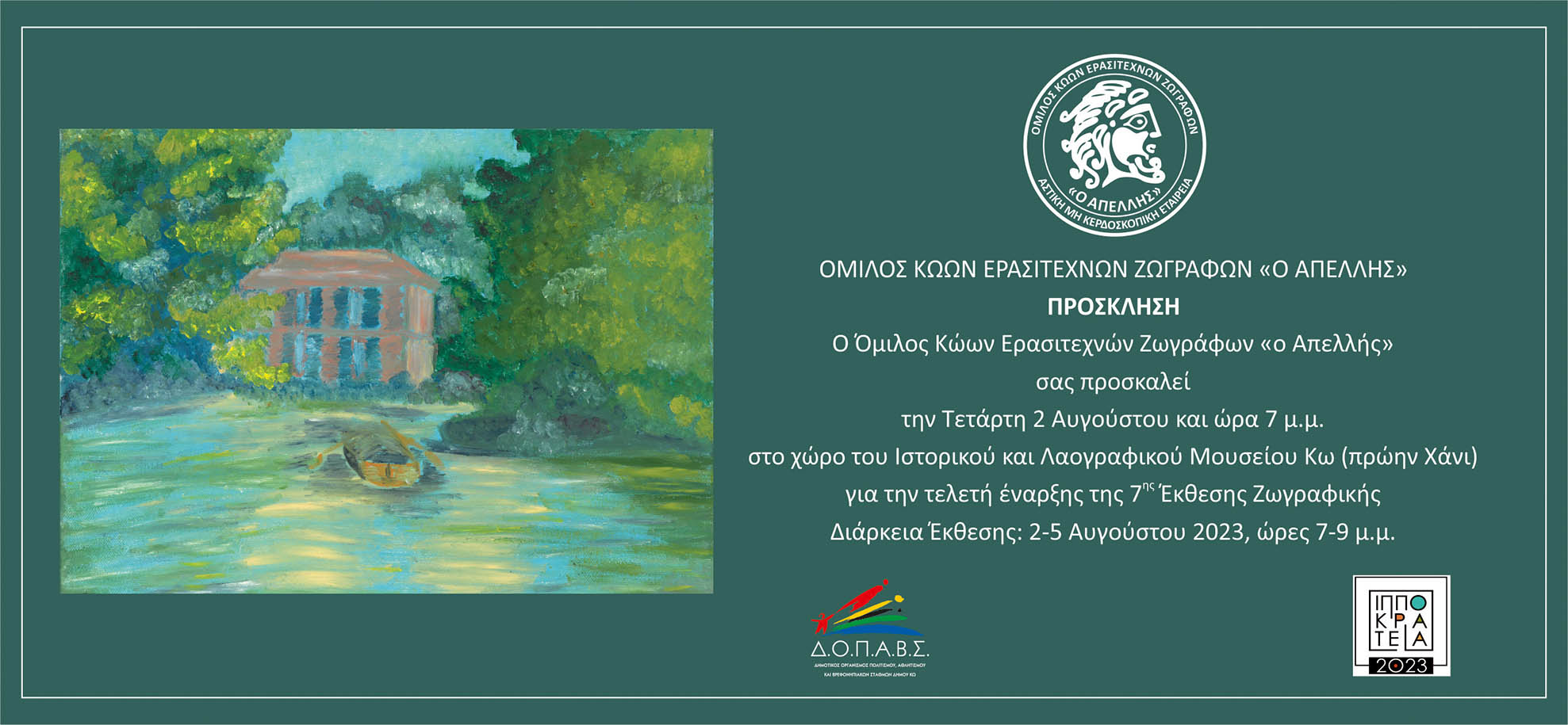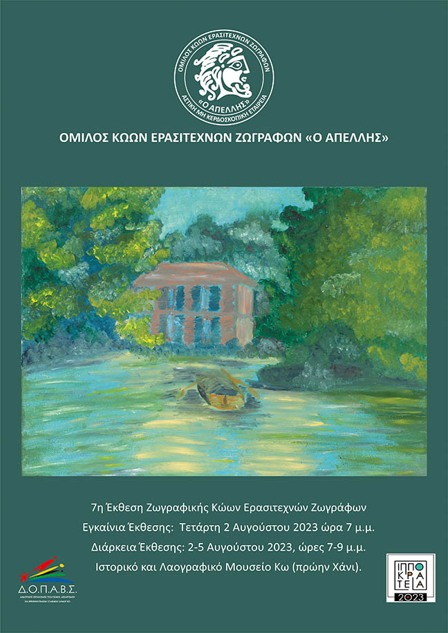 Η 7ηΈκθεση Ζωγραφικής Κώων Ερασιτεχνών Ζωγράφων διοργανώνεται από τον Όμιλο Κώων Ερασιτεχνών Ζωγράφων ΄΄Ο Απελλής΄΄ στα Θερινά Ιπποκράτεια 2023.