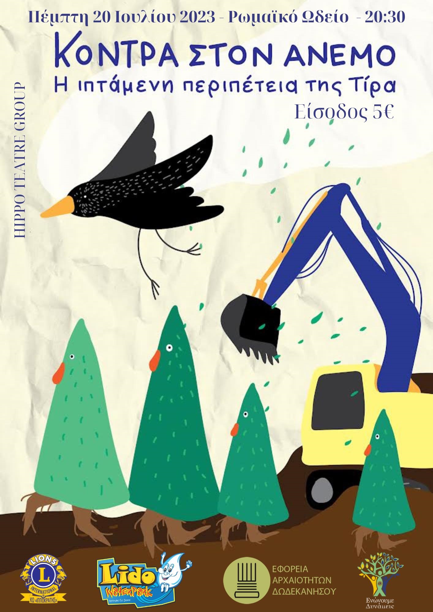 H λέσχη LIONS Club Kos "Ιπποκράτης" σε συνεργασία με το «Hippo Theatre Group» παρουσιάζει το έργο «Κόντρα στον άνεμο: Η ιπτάμενη περιπέτεια της Τίρα»
