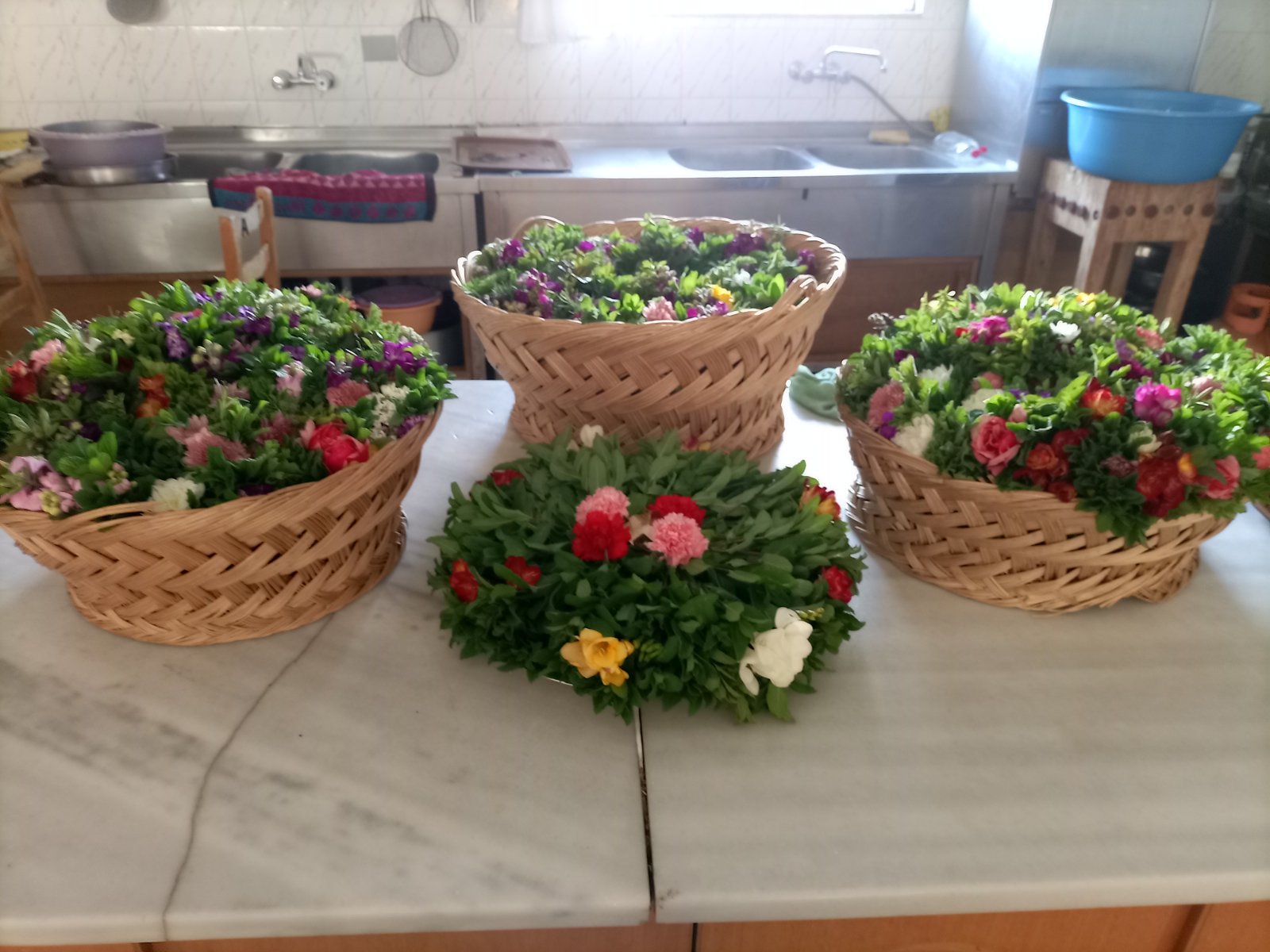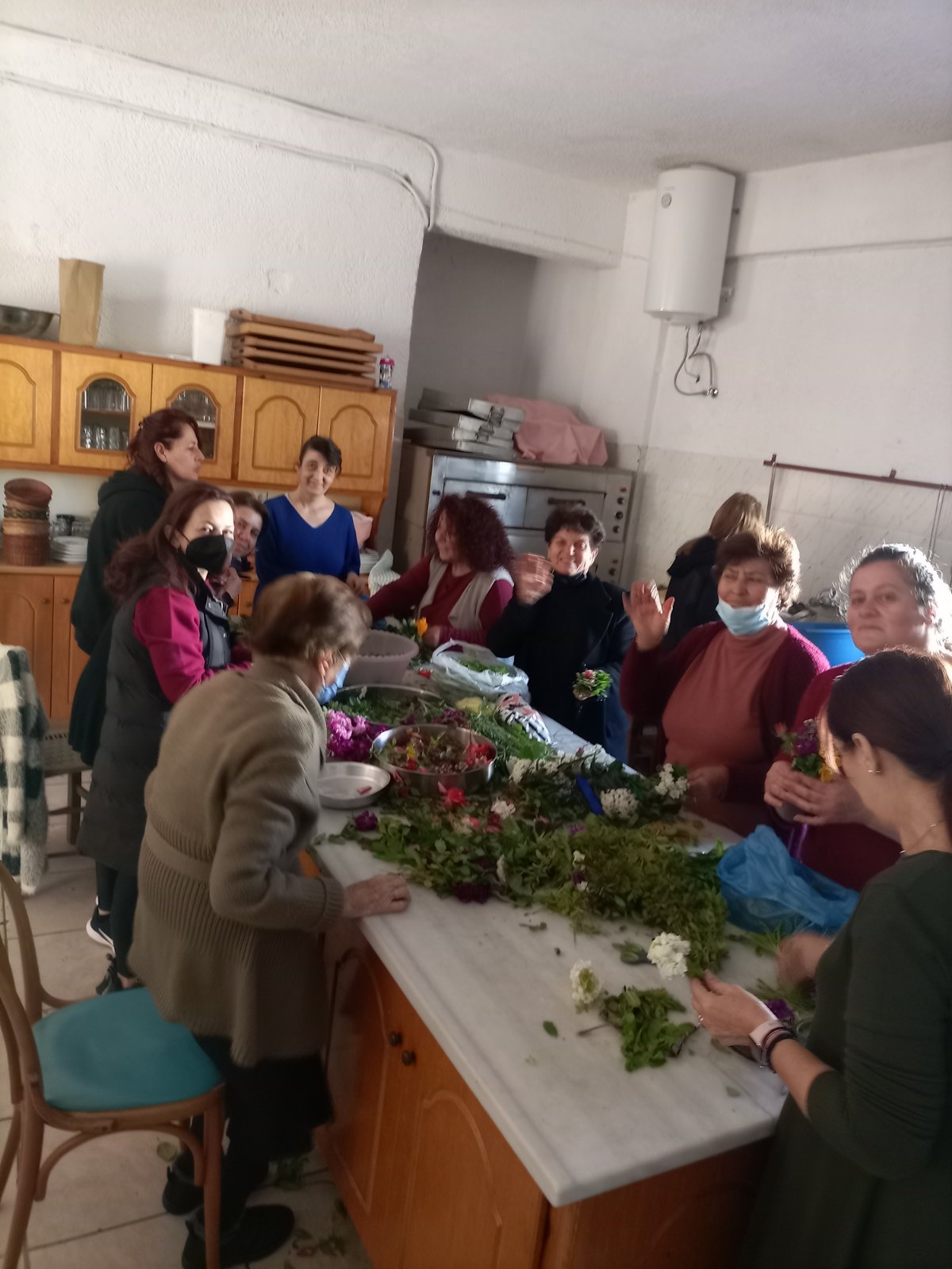 Στις φωτογραφίες, οι γυναίκες από την ενορία του Αγ. Γεωργίου Πυλίου που φτιάχνουν σήμερα τις παραδοσιακές "φούντες"