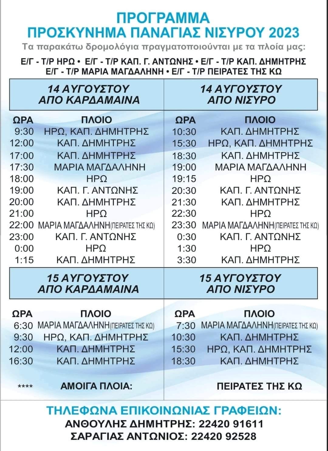 Τα δρομολόγια των πλοίων για τον εορτασμό της Παναγιάς Σπηλιανής στη Νίσυρο