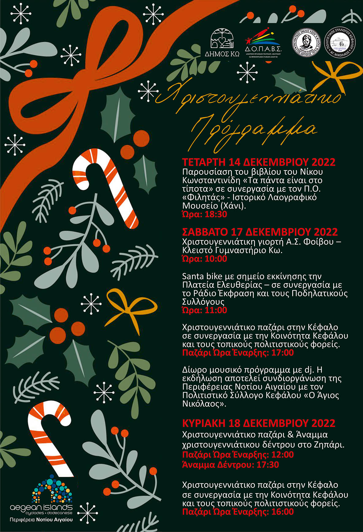 Επίσης την Κυριακή 18 Δεκεμβρίου σε συνεργασία με την Κοινότητα Κεφάλου και τους Τοπικούς Συλλόγους θα πραγματοποιηθεί το Χριστουγεννιάτικο παζάρι στην Κέφαλο στις 16:00