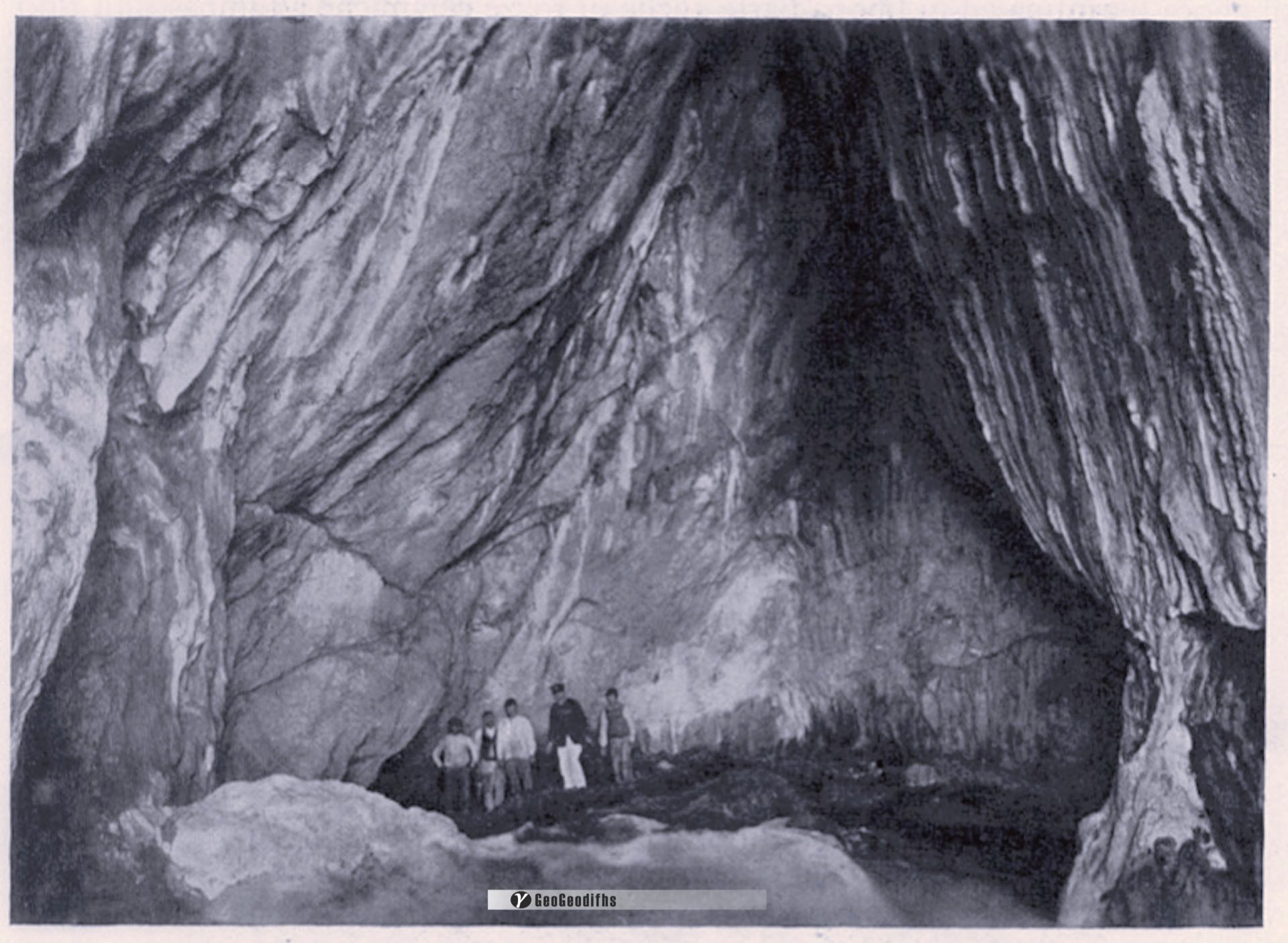 Το καρστικό σπήλαιο Δασκαλιό με τους Ιταλούς ερευνητές σε φωτογραφία της δεκαετίας΄20 .