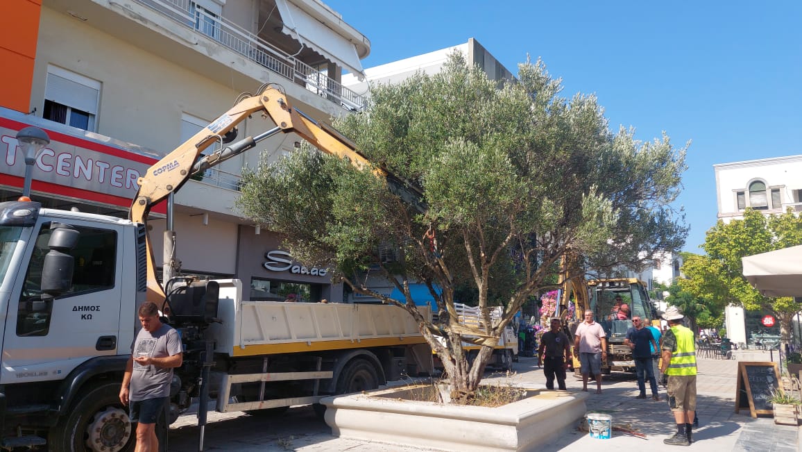Σήμερα το πρωί, συνεργεία του Δήμου Κω, προχώρησαν στην τοποθέτηση ελιάς στην Πλατεία Κονίτσης, στο πλαίσιο των συναποφάσεων που πήραν από κοινού Δήμαρχος και επιχειρηματίες - πολίτες για την ανάπλαση της περιοχής.