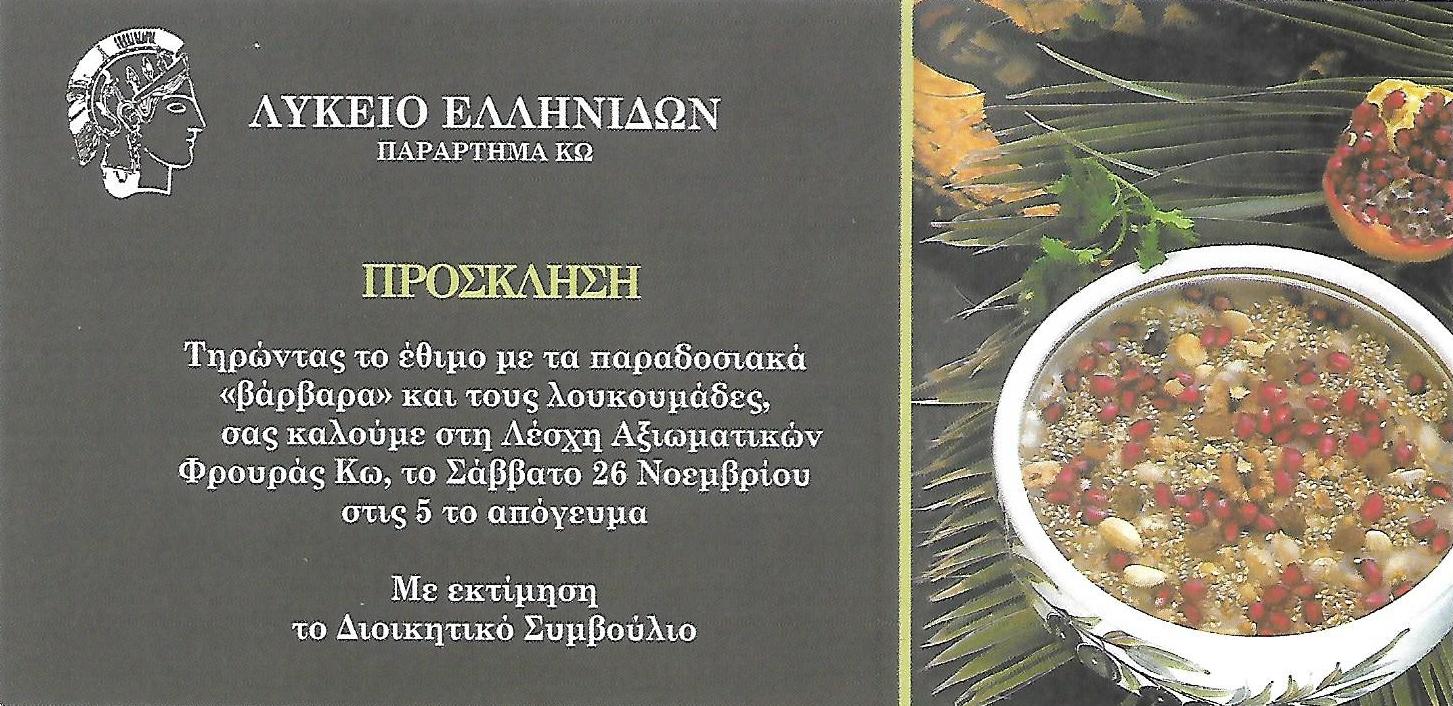 Βάρβαρα και λουκουμάδες από το Λύκειο Ελληνίδων Κω
