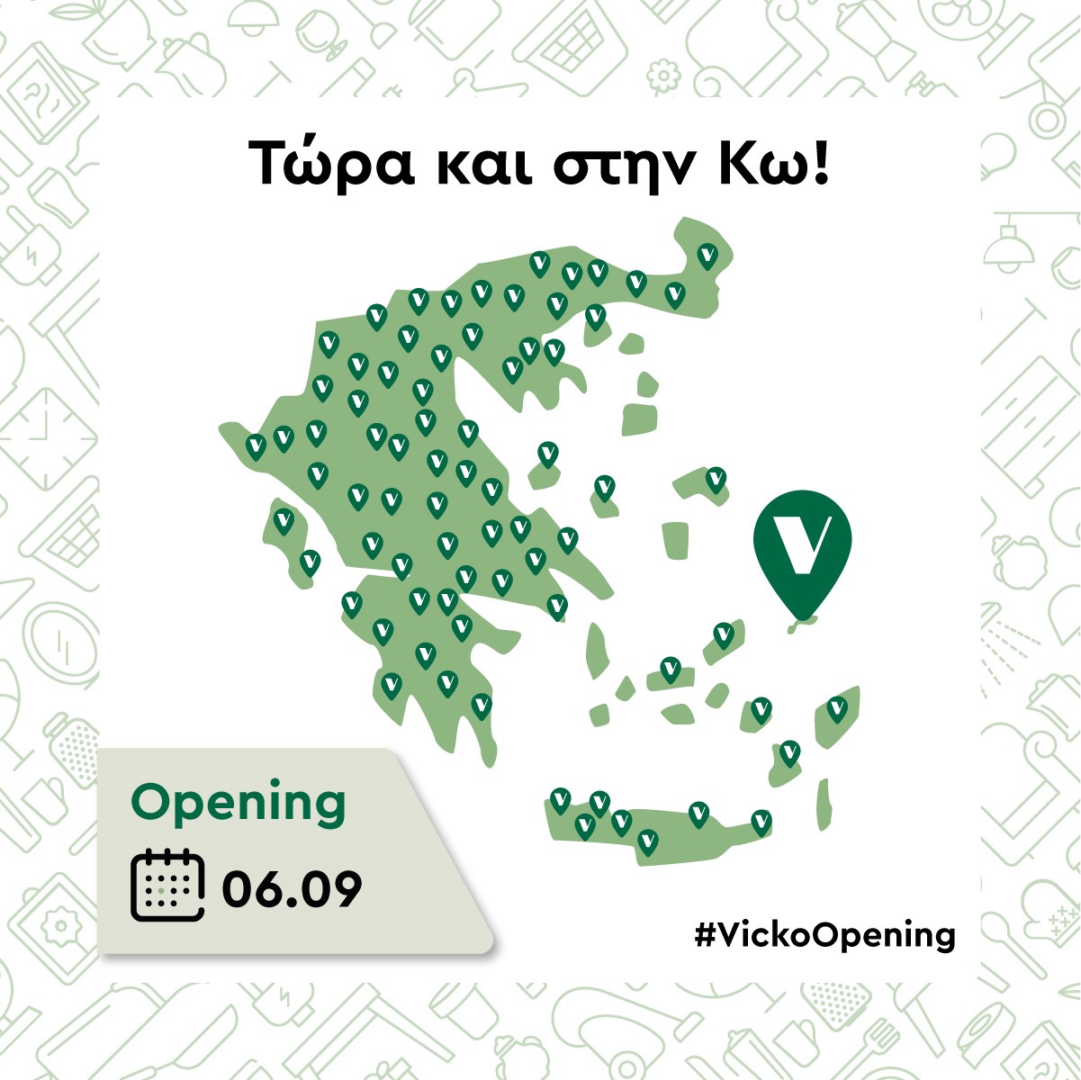 Από τη Δευτέρα 6 Σεπτεμβρίου, ένα ολοκαίνουριο κατάστημα VICKO θα σας περιμένει στην είσοδο της πόλης, στην οδό Λ. Γρηγορίου Ε’ 53, σε έναν άνετο χώρο 400 τ.μ. γεμάτο από αμέτρητες ιδέες για να ανανεώσετε κάθε χώρο του σπιτιούσας.