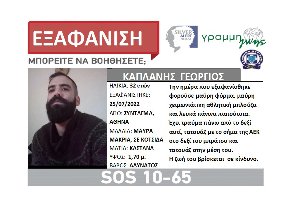 Βρέθηκε ο 32χρονος Γιώργος Καπλάνης που είχε εξαφανιστεί