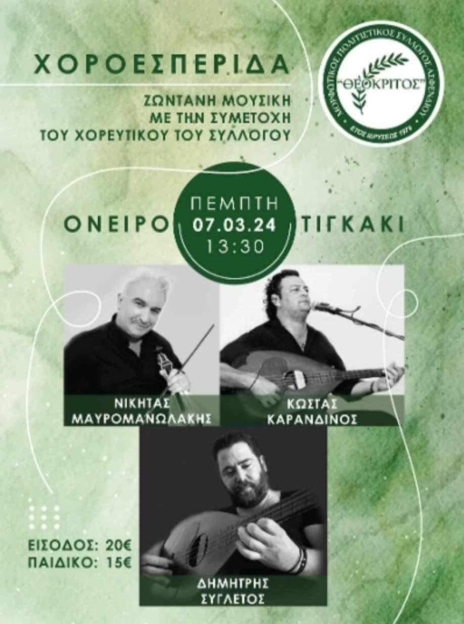 HomeΤοπικάΧοροεσπερίδα του Θεόκριτου την Πέμπτη 7/3